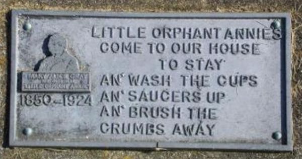 The resting place of Mary Alice Gray made famous by Hancock County Poet James Whitcomb Riley in his poem Little Orphant Annie lies on the Northern edge of Spring Lake in the Philadelphia cemetery.